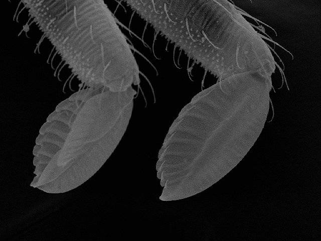 sp.: mucro with smooth outer lamella (right) and serrated inner (left) lamellae.