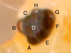 the outer lateral ocelli A, E and F appear as transparent domes