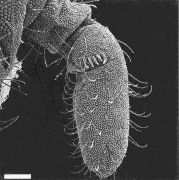 Figuur 9: De mucro, de top van de furca van Podura aquatica. (Driscoll)