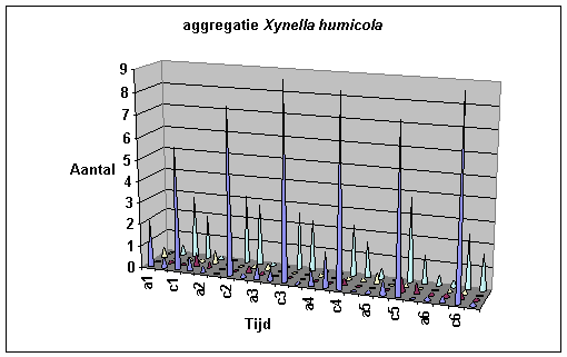 Bijlage 16: Voorstelling van de plaats waar de collembolen zich bevinden doorheen het experiment bij Xenylla humicola.