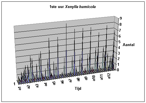 Bijlage 20: Voorstelling van de plaats waar de collembolen zich bevinden het eerste uur van het experiment bij Xenylla humicola.