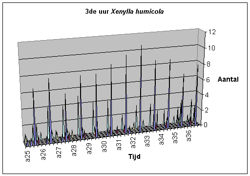 Bijlage 22: Voorstelling van de plaats waar de collembolen zich bevinden het derde uur van het experiment bij Xenylla humicola.