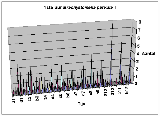 Bijlage 23: Voorstelling van de plaats waar de collembolen zich bevinden het eerste uur van het experiment bij Brachystomella parvula.