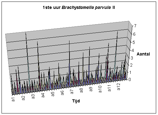 Bijlage 25: Voorstelling van de plaats waar de collembolen zich bevinden het eerste uur van het experiment bij Brachystomella parvula.