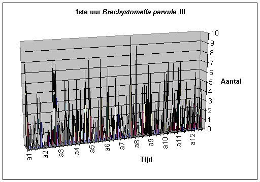 Bijlage 27: Voorstelling van de plaats waar de collembolen zich bevinden het eerste uur van het experiment bij Brachystomella parvula.