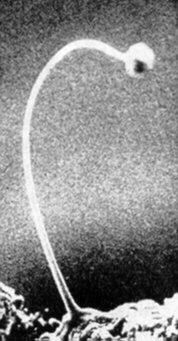 In 1952 werd door Schaller voor het eerst het bestaan van spermatoforen waargenomen (Massoud, 1971). Vandaag is hun aanwezigheid bijna bij alle soorten springstaarten gesignaliseerd. Op de bouw van spermatoforen wordt hier niet uitvoerig ingegaan, daarvoor wordt verwezen naar oa. Schaller (1970) en Betsch-Pinot (1974). Voor de manier van afzetten wordt verwezen naar Schaller (1952). Het volstaat te vermelden dat een spermatofoor bij de meeste springstaarten bestaat uit een fijn steeltje of pedunculus dat een spermadruppeltje draagt (fig.2.8). Het spermadruppeltje wordt enkel door een condensatiemembraan tegen uitdrogen beschermd. De afmetingen van zowel het steeltje als het druppeltje zijn zeer variabel (Massoud, 1971).