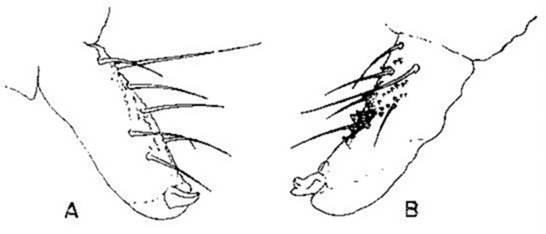 A: Zomervorm. B: Wintervorm met tandjes (naar Leinaas, 1981)