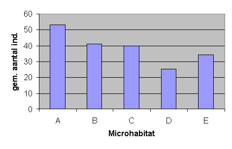 Fig. 6.10 Het gemiddeld aantal springstaarten per microhabitat.