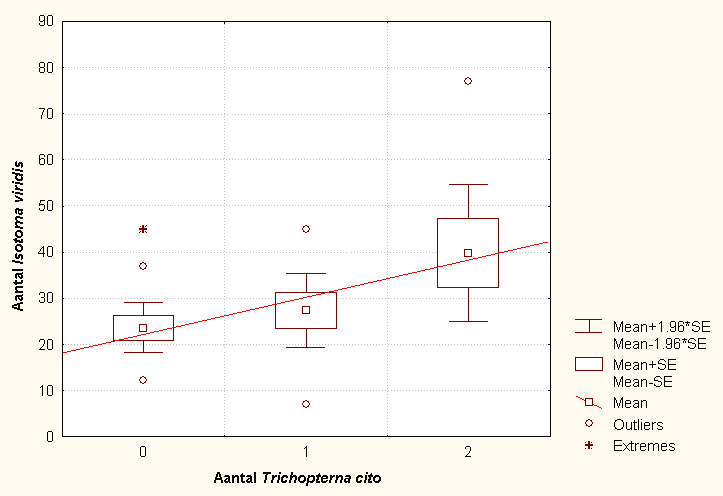 Fig. 6.11 Grafiek die de correlatie tussen Trichopterna cito en Isotoma viridis weergeeft.