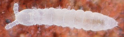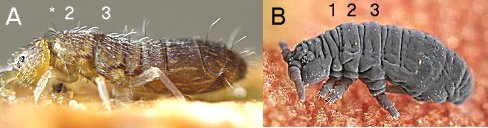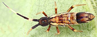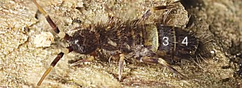3(2). Antennae longer than head; first thoracic tergite absent (fig.4a); legs long; trunk segmentation outline smooth (fig.1)................................................ 4 Antennae shorter than head; first thoracic tergite present but quite narrow (fig.4b); legs short; trunk segmentation outline bumpy (fig.5)................................. 26 |
