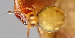 Antennae longer than head. Body colour not whitish. Body shape subglobular