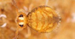 46(45). Dorsal pattern orange transverse reticulate (fig.56)........ ..................... Sminthurinus aureus forma reticulatus Dorsal pattern posteriorly black comma-shaped (fig.57)...... ....................... Sminthurinus aureus forma maculatus |