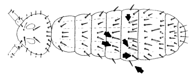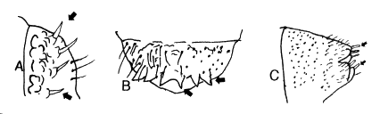 99(98). Last abdominal segments with many small sensory setae (fig.63)..................................... Sericeotoma 21 Last abdominal segments with very few or no small abdominal sensory setae......................................... 100 |