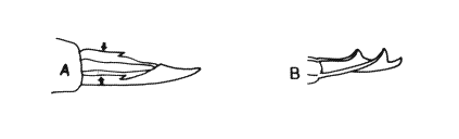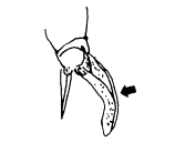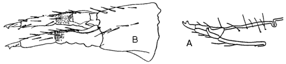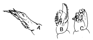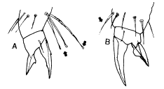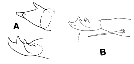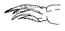 93(92). Lateral teeth of unguis enlarged forming tooth like pseudonychia (fig.54a)...................... Pteronychella 6 Lateral teeth of unguis small, even if large not forming pseudonychia........................................... 94 |