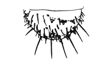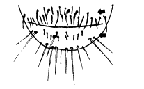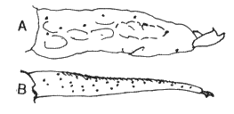 46(45). Dentes long and slender; dorsum of dentes with small triangular projections; dorsum of dentes with few setae; integument granulate....................... Propachyotoma 30 Dentes not long and slender; dorsum of dentes without small triangular projections; dorsum of dentes with many setae; integument not granulate...................... Pachyotoma 15 |