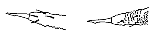 75(73). Dental spines in up to 4 rows all of one type............ 76 Dental spines of 2 types, 1 slender and a second short and stout (fig.45)................................ Spinocerura |
