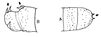 1(0). Dorsal surface of abdominal segments 5 & 6 with a peculiar crown like median projection (fig.1)...................... ........................................ Proctostephanus 26 Dorsal surface of abdominal segments 5 & 6 without a peculiar crown like median projection................... 2 |