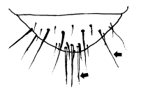 40(39). Chaetotaxy of fifth and sixth abdominal segments not strikingly different, if macrochaetae present there are numerous small setae................................... 41 Chaetotaxy of fifth and sixth abdominal segments strikingly different from fourth in chaetotaxy, both or sometimes only the sixth segment have strong straight macrochaetae and a few normal setae (fig.24)................ Isotomodes |