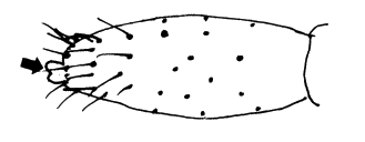 29(28). Fifth abdominal segment strongly reduced with 10 or fewer normal setae (fig.15)..................... Micranurophorus Fifth abdominal segment with many normal setae........... 30 |