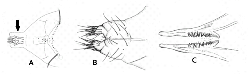 10(8). Dental appendix pointed (fig.5b).......................... 11 Dental appendix rounded (fig.5a).......................... 13 |