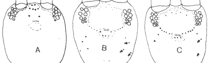 23(22). Genal and occipital areas of head with 1 or no macrochaetae (fig.19c)....................................... Callyntrura Genal and occipital areas of head with 3 macrochaetae (fig.19b)................................. Dicranocentroides |