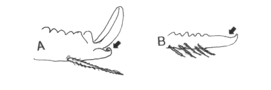 19(18). Mucro with 2 teeth (fig.7c)................................ 20 Mucro with 3 or more teeth (fig.7a&b)...................... 21 |