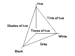 black -> shade -> tone -> tint -> white