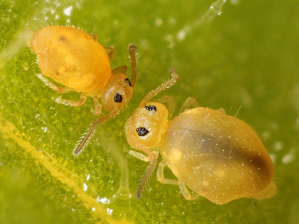 the male of Deuterosminthurus guides the female to take up the spermatophore.