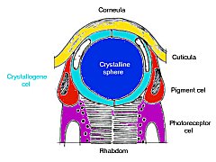 the crystalline sphere does not focus the incoming light on the pigment cells
