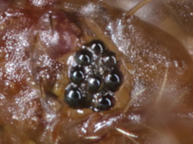 When observed in frontal aspect, the sphere shaped ocellus appears dark.