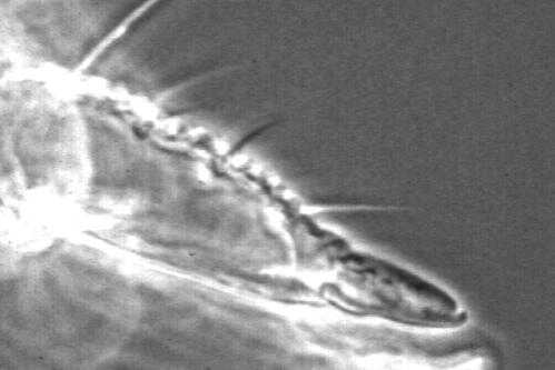 | Fig.3. Anal spine 100x Photograph Frans Janssens copyright © (1998) |