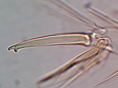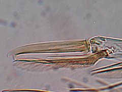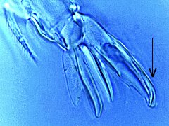 | Remark by Janssens, F. 2023.02.04: The new name means "having small equal teeth", but the etymology refers to the large inner paired basal teeth of the unguis. This mismatch is clear evidence of an inadvertent error that must be corrected (Art.32.5.1). The closest match with the etymology is the name "equidentatus". |