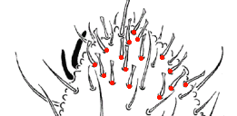 | 4(3). First to third abdominal segment with m4 setae; labium without organites-x and papillate setae L; median pair of prelabral setae present (fig.5a); tibiotarsi with one distinctly clavate tenent hair (fig.4a).................... corticicolus First to third abdominal segment without m4 setae; labium with 2 + 2 organites-x and papillate setae L (fig.6); median pair of prelabral setae absent (fig.5b); tibiotarsi with one blunt tenent hair (fig.4b)............................... janstachi | |