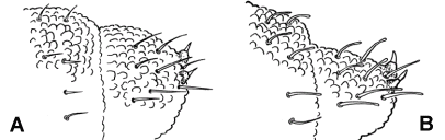 5(4). First to third abdominal segment seta a3 absent; first tibiotarsus with 11 setae; third thoracic segment without microsensillum...................................... palaciosi First to third abdominal segment seta a3 present; first tibiotarsus with 12 setae; third thoracic segment with microsensillum.................................. unguidentatus |