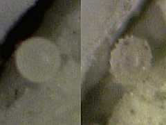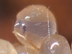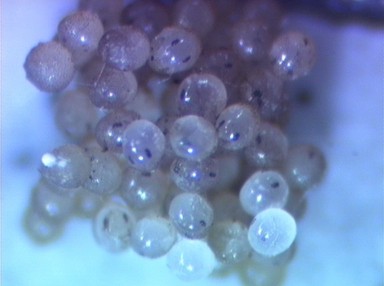 Freshly deposited eggs are orange-brown. The egg swells during embryonic