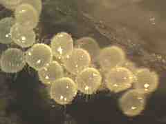 Egg batches of several different females may be clustered (up to 700 eggs