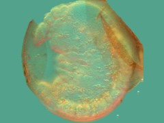 The chorion splits after 8 days (Fig.4d). The egg deforms to a more oval shape: