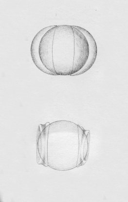 aplati; l'enveloppe extérieure se fend dans son plus grand