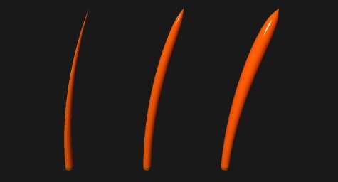 The setal shaft can have a negative, zero or positive proximodistal diameter gradient. Setae with a negative shaft radius gradient are recorded from all species. It is the typical acuminate shape of the setulae and the microchaetae. Acuminate macrochaetae are recorded from genera such as Isotoma. Cylindric macrochaetae with a zero shaft radius gradient are recorded from genera such as Orchesella. Also trichobothria typically have a cylindric setal shaft. Clublike macrochaetae having a positive shaft radius gradient are recorded from genera such as Cyphoderus. |